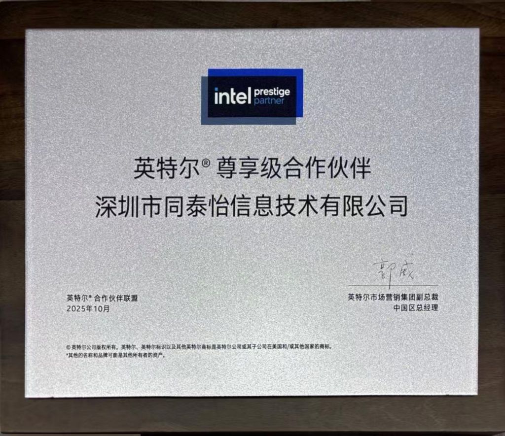 近日,同泰怡在英特尔技术创新与产业生态大会上正式获评首批“英特尔尊享级合作伙伴”称号,成为英特尔合作伙伴联盟中为数不多且备受认可的最高级别成员。这一荣誉标志着同泰怡在技术创新、产品研发及行业解决方案能力上达到了英特尔全球标准,双方合作迈入全新阶段。