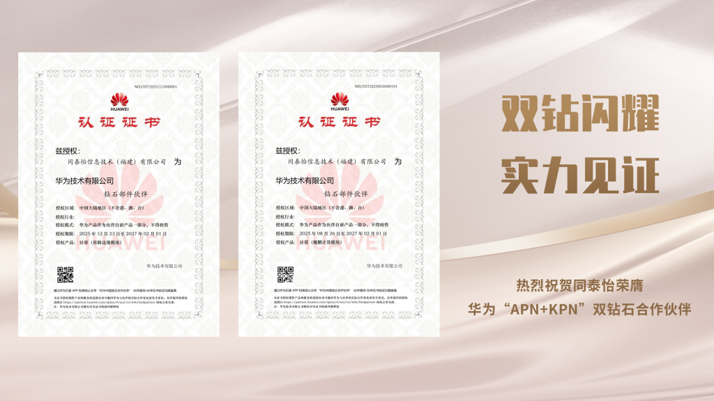 连续获得华为两大计算体系的钻石部件伙伴认证,是对同泰怡团队和战略方向的双重肯定。“钻石部件伙伴”授权意味着同泰怡不仅获得了华为顶尖计算硬件的集成许可,更代表研发实力、产品能力、质量管理体系及对行业客户需求的理解,均获得了华为最高层面的认可。此次与华为在鲲鹏与昇腾两大技术体系上的深度融合,将使同泰怡的行业方案与产品如虎添翼。