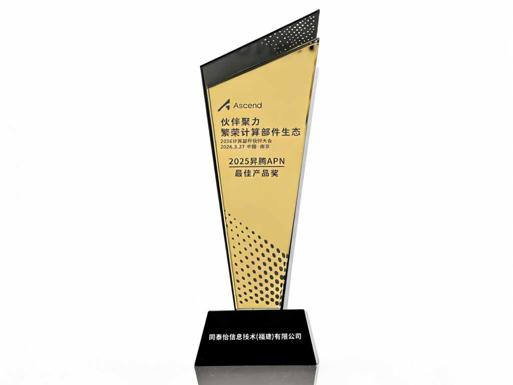 2025昇腾APN最佳产品奖:聚焦昇腾APN伙伴在产品创新、方案成熟度及市场推广等方面的综合表现。该奖项充分肯定了同泰怡产品在性能、兼容性及场景落地中的卓越实力,标志着同泰怡AI解决方案已跻身业界领先水平,充分展现了同泰怡在人工智能领域的深厚积累与生态贡献。
